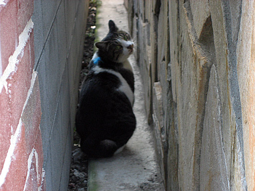 横浜山手を歩いていたら、建物と建物の細いすき間にねこがいました。カメラを向けると、いいタイミングで振り返ってくれました。