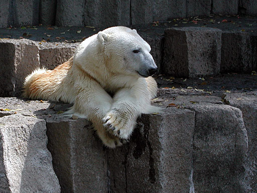 動物園で見るホッキョクグマといえば、必ずといっていいほど右へ左へうろつき回り、落ち着きがないものです。でもコイツは大人しくしていました。