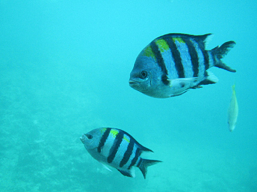 海岸から橋を渡って展望塔まで行き、塔の中の階段を水深5mぐらいまで降りていくと、窓の外にはサンゴ礁の海中が見えます。