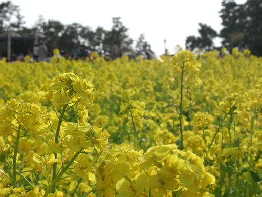 菜の花畑。 一つひとつの花のディテールと、畑一面の広がりを捉えつつ、見物客を目立たないように写すのに四苦八苦。この写真も、あまり成功しているとは言えない。