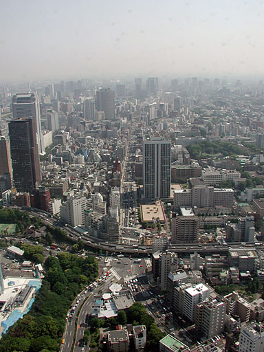 東京タワーから見下ろした東京の街。もうちょい左を向くとお台場が見えて、大きく右を向くと新宿が見えます。ということは、これはどっち方面を見ているの??
