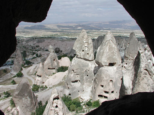 ウチヒサルの城塞から奇岩をのぞむ。ここはいったいどこの星か?と思わせる風景。