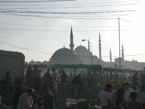 エミノニュ広場。日本の町並みでは決して見ることのできないモスクのシルエットが、別の国にいることを実感させてくれます。