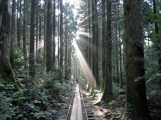 トロッコ列車の線路は、途中からレールの間に板が敷かれた作りになり、格段に歩きやすくなります。