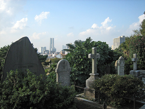 手前の墓標と、借景としてのランドマークタワーを併せて見ると、ランドマークタワーも墓標の一つの用に見える…かも。