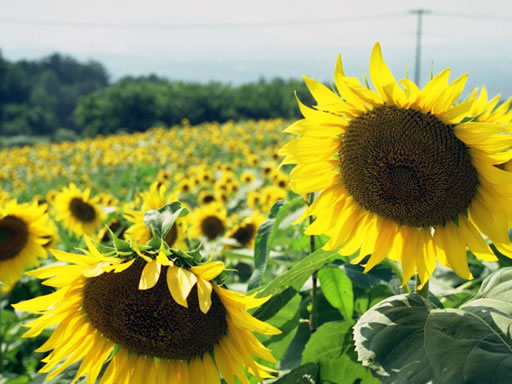 手前の花を大きく捉えてフォーカスを合わせ、その向こうにずっと畑が続いている様子をぼかして見せることを、最初から意図して撮影した。