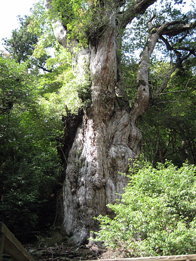 確かに巨大ですが、正直言って美しいとは言いがたい姿。縄文杉の前には見学用のデッキが設置され、実は何十人もの登山者がひしめいていました。