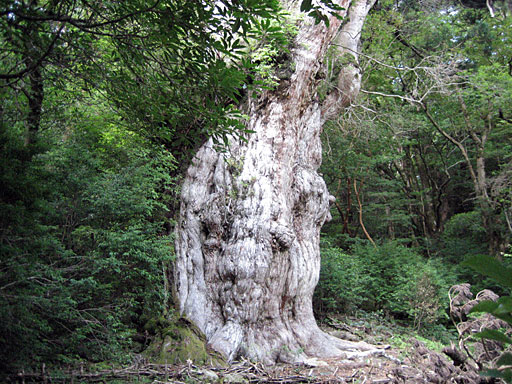 これが縄文杉です。 確かに巨大ですが、正直言って美しいとは言いがたい姿。縄文杉の前には見学用のデッキが設置され、実は何十人もの登山者がひしめいていました。 そんなわけで、苦労して到達した割に感動はイマイチでした(^^;)。