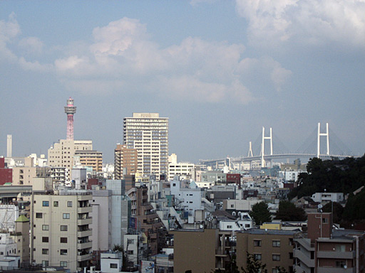 山手の丘から見下ろしたマリンタワーとベイブリッジ。