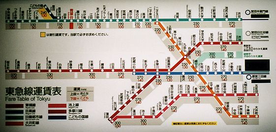 東急路線図。新玉川線は田園都市線になりました。目蒲線は目黒線と多摩川線に分かれました。